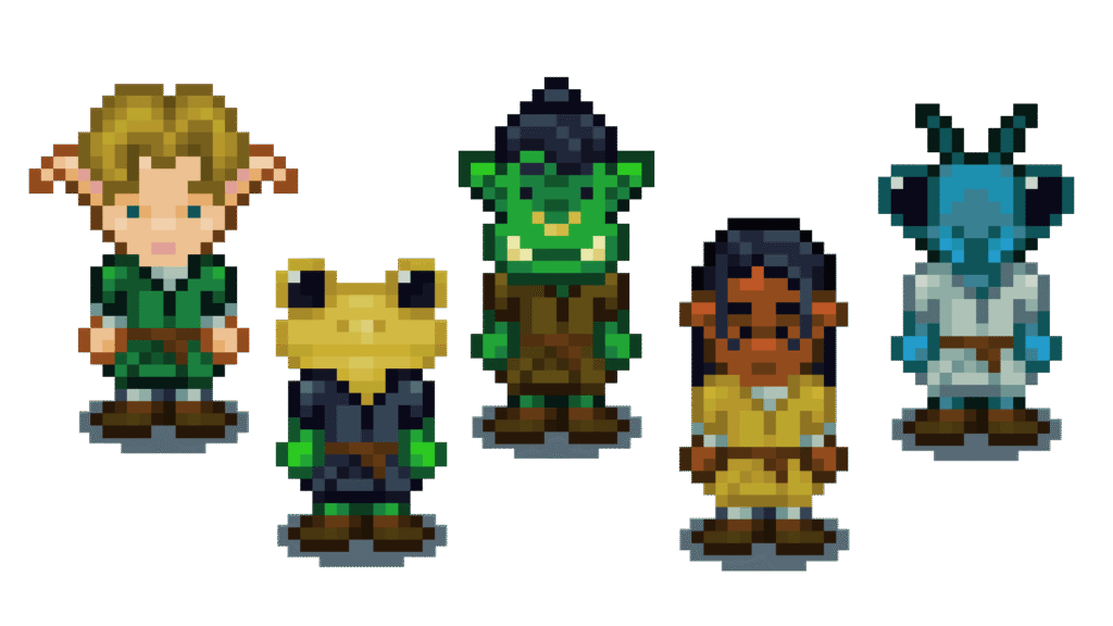 Roleplay and design your character from 5 different fantasy species, face, hair and body shapes. Then level up and specialize in your class unlocking skills in the skill tree.